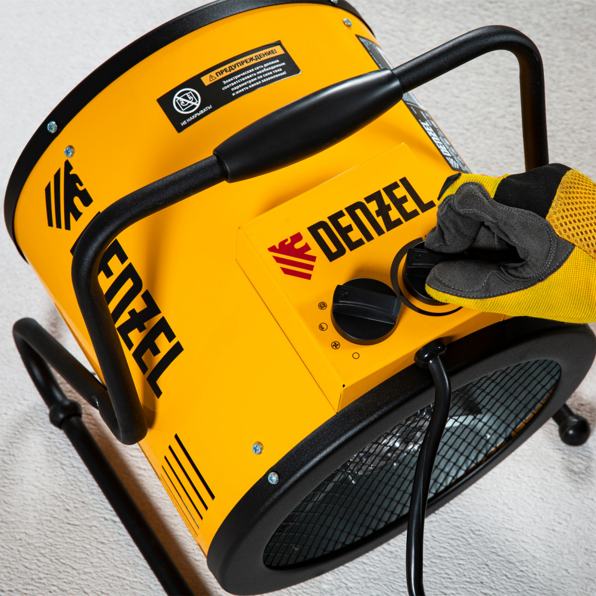 Трехфазная тепловая пушка Denzel SFH-9000 96439 поддерживает 3 режима работы: вентилятор, обогрев на мощности 6000 Вт и 9000 Вт. Предназначена для обогрева и вентиляции помещений площадью до 90 кв. м помещений, а также для просушки предметов и поверхностей. Тепловентилятор увеличенного размера создает теплый воздушный поток, мощность которого составляет 850 м3/ч при максимальной нагрузке. Данная модель оптимально подходит для профессионального применения на строительных объектах, в мастерских и гаражах.