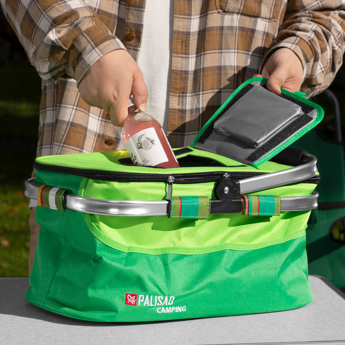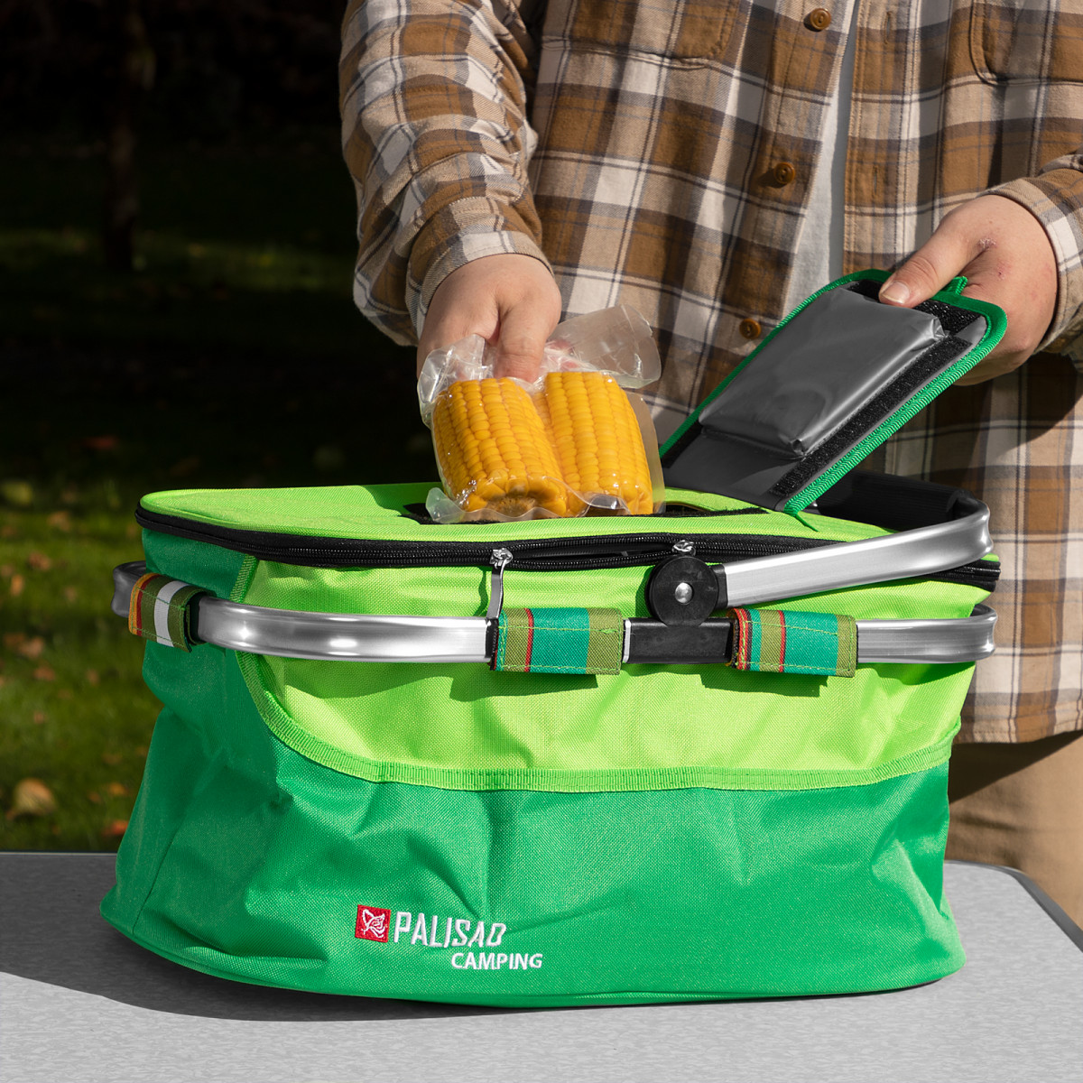 Термосумка Palisad Camping 69595 размером 44 х 24 х 26 см, используется во время поездок и на пикниках. Благодаря теплоизоляционному слою из PEVA и EPE долгое время сохраняет температуру охлажденных или подогретых продуктов и напитков. Имеет надежную конструкцию, усиленную каркасом и рукояткой из алюминия.