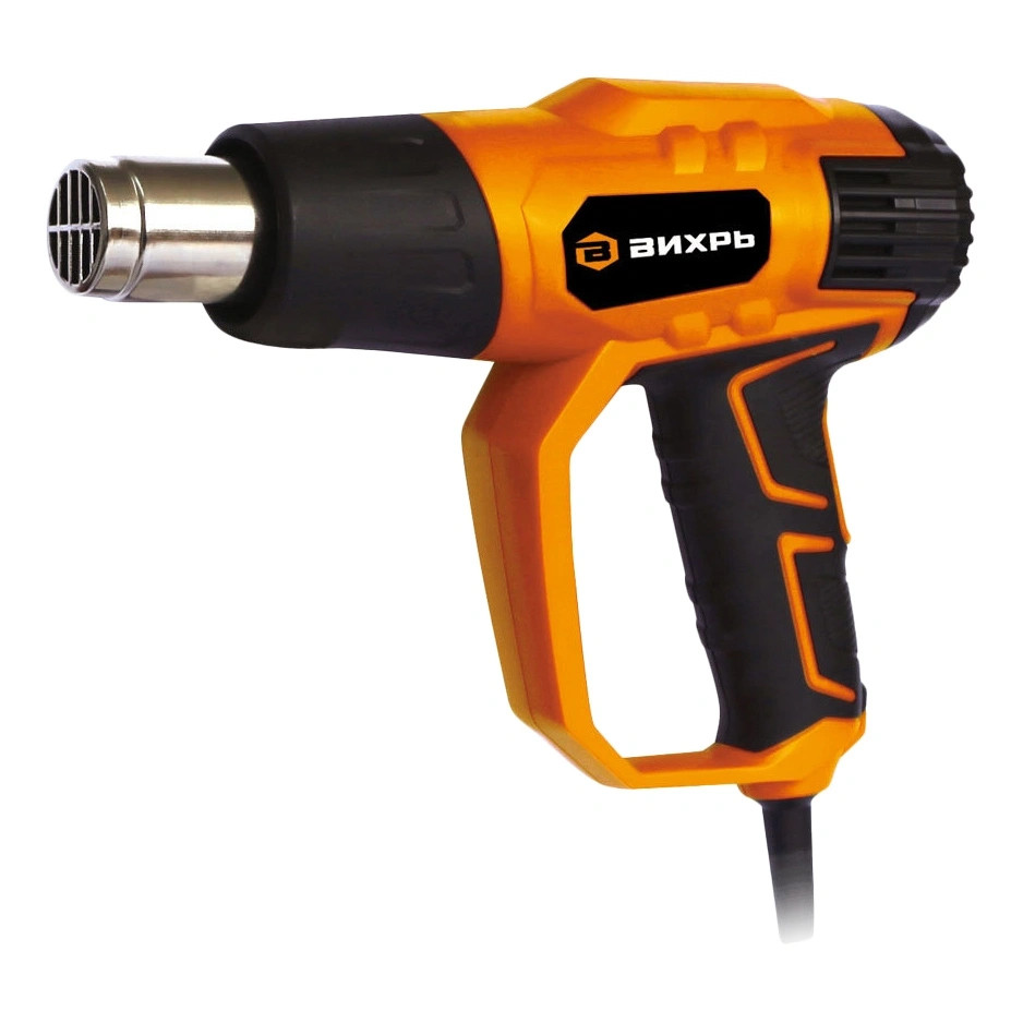 Термопистолет (фен промышленный) ВИХРЬ ТП-2000Р – ручной электроинструмент для обработки горячим воздухом поверхностей и материалов, для удаления красок, формования и сварки пластмассы, нагревания термоусадочных труб; инструмент также подходит для пайки и лужения, размягчения клеевых соединений (швов), а также размораживания водопроводных труб. Термопистолет предназначен для эксплуатации при температуре окружающей среды от -10°С до +40°С, относительной влажности воздуха не более 80% и отсутствии прямого воздействия атмосферных осадков и чрезмерной запылённости воздуха.