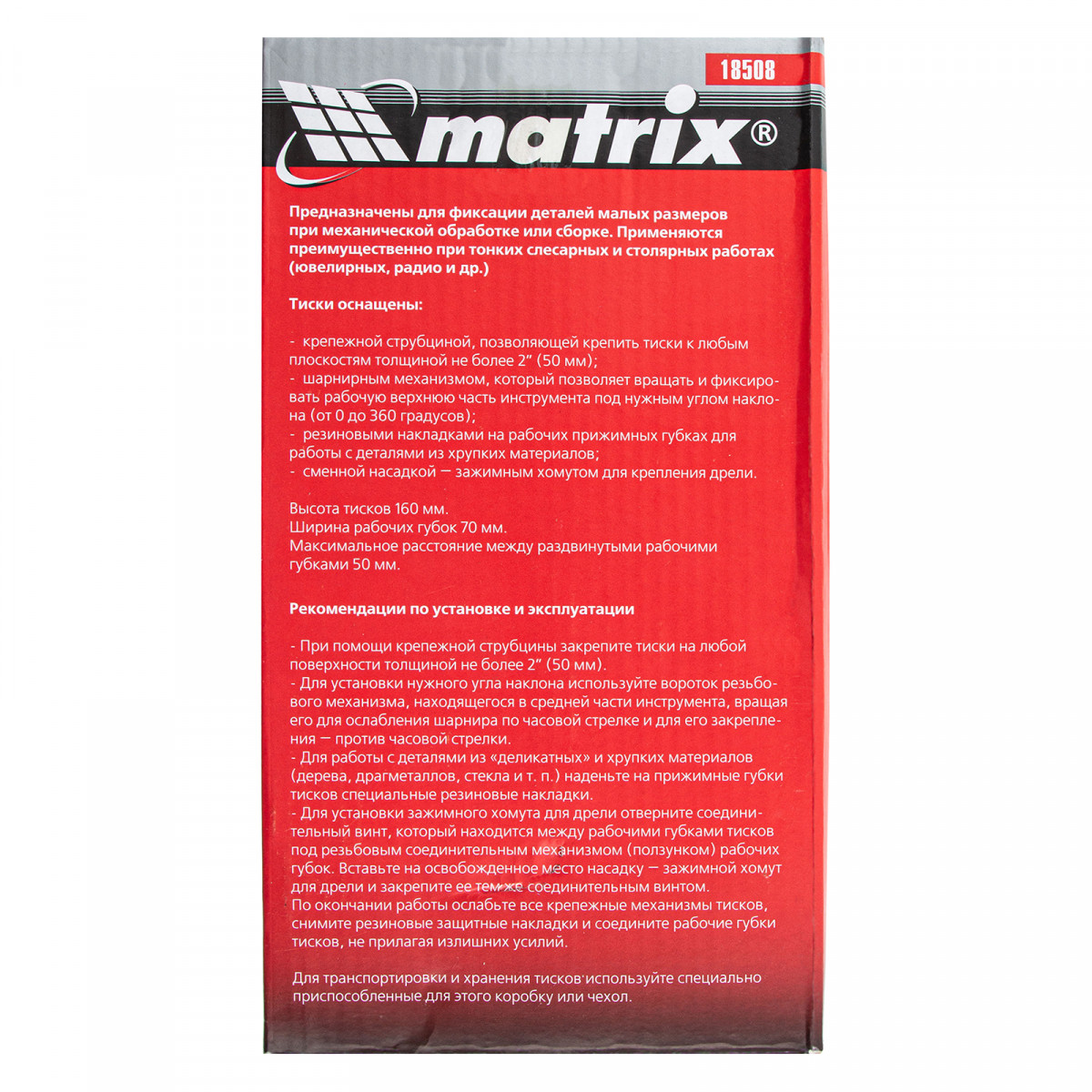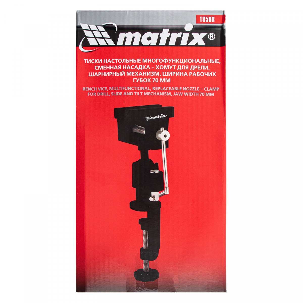 Тиски настольные, многофункциональные, сменная насадка, хомут для дрели, шарнирный механизм, 70 мм Matrix