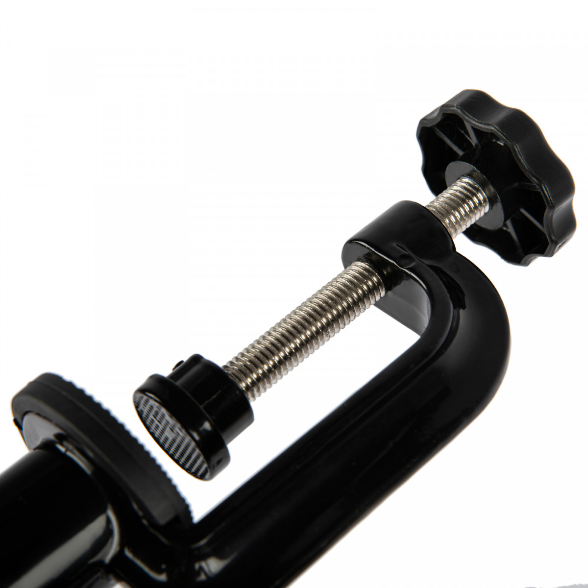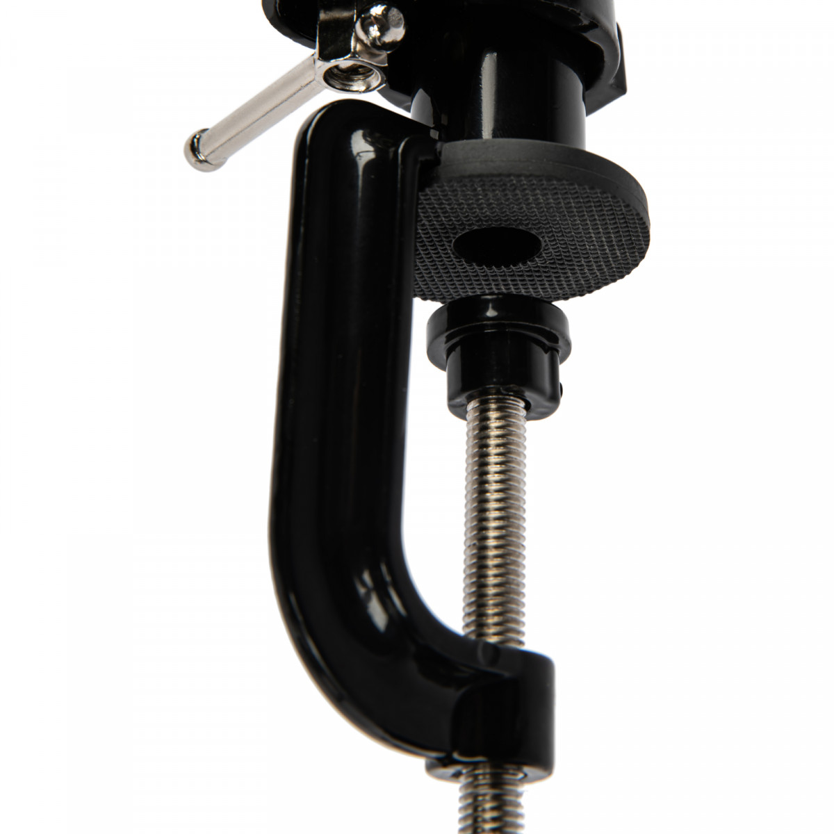 - Зажимной хомут позволяет зафиксировать дрель для удобства сверления деталей.
