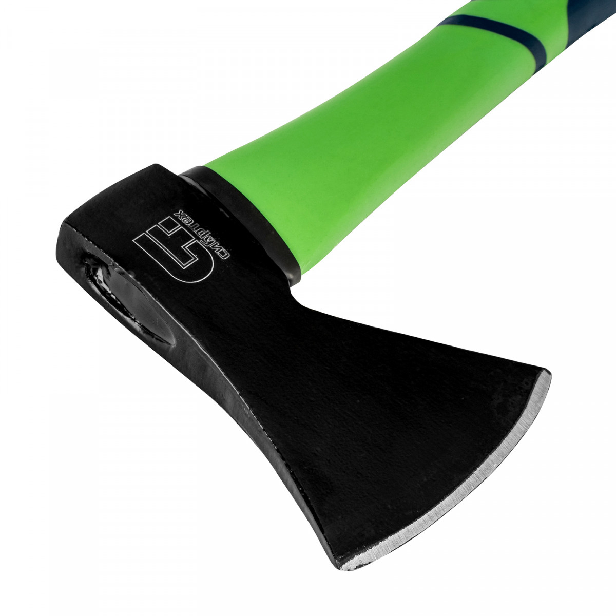 Фибергласовое топорище гасит вибрации, снижая нагрузку на руки при работе.