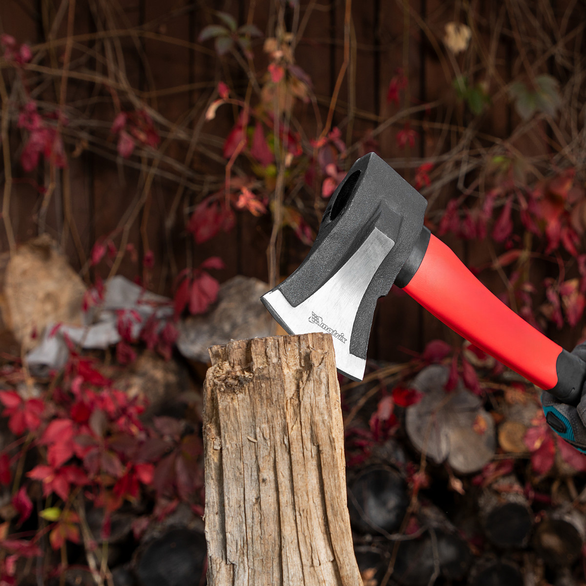 • Комфортная работа — резиновые накладки на топорище поглощают колебания от ударов и обеспечивают надежный хват.