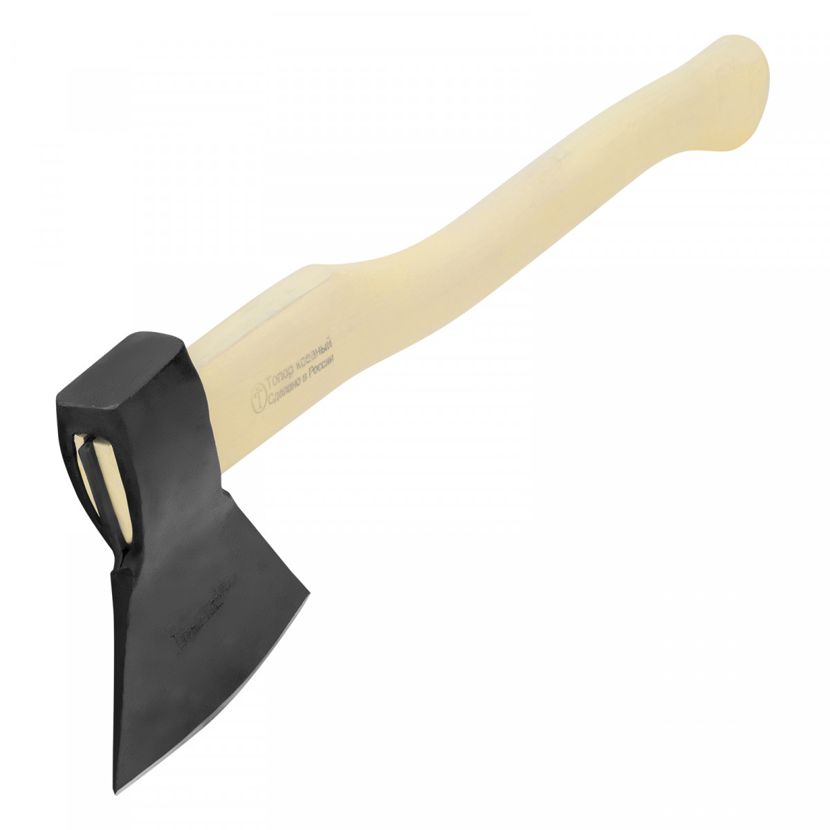 • Надежное топорище — древесина березы отшлифована, покрыта шпатлевкой и пленкой.