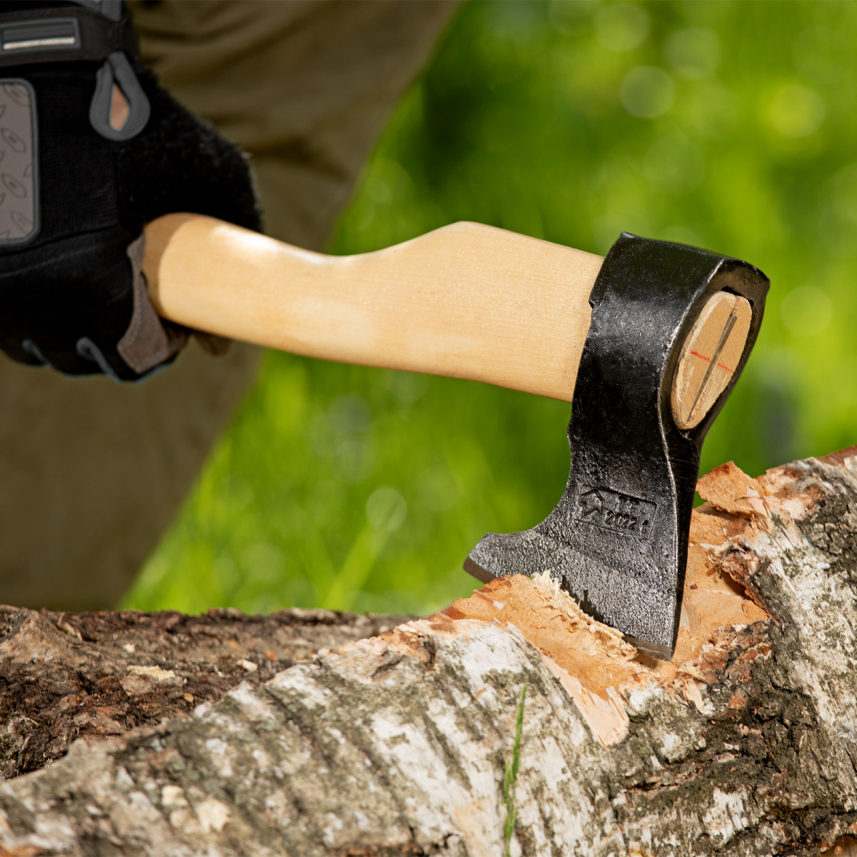 • Топор полностью готов к работе, т.к. был заточен на заводе.