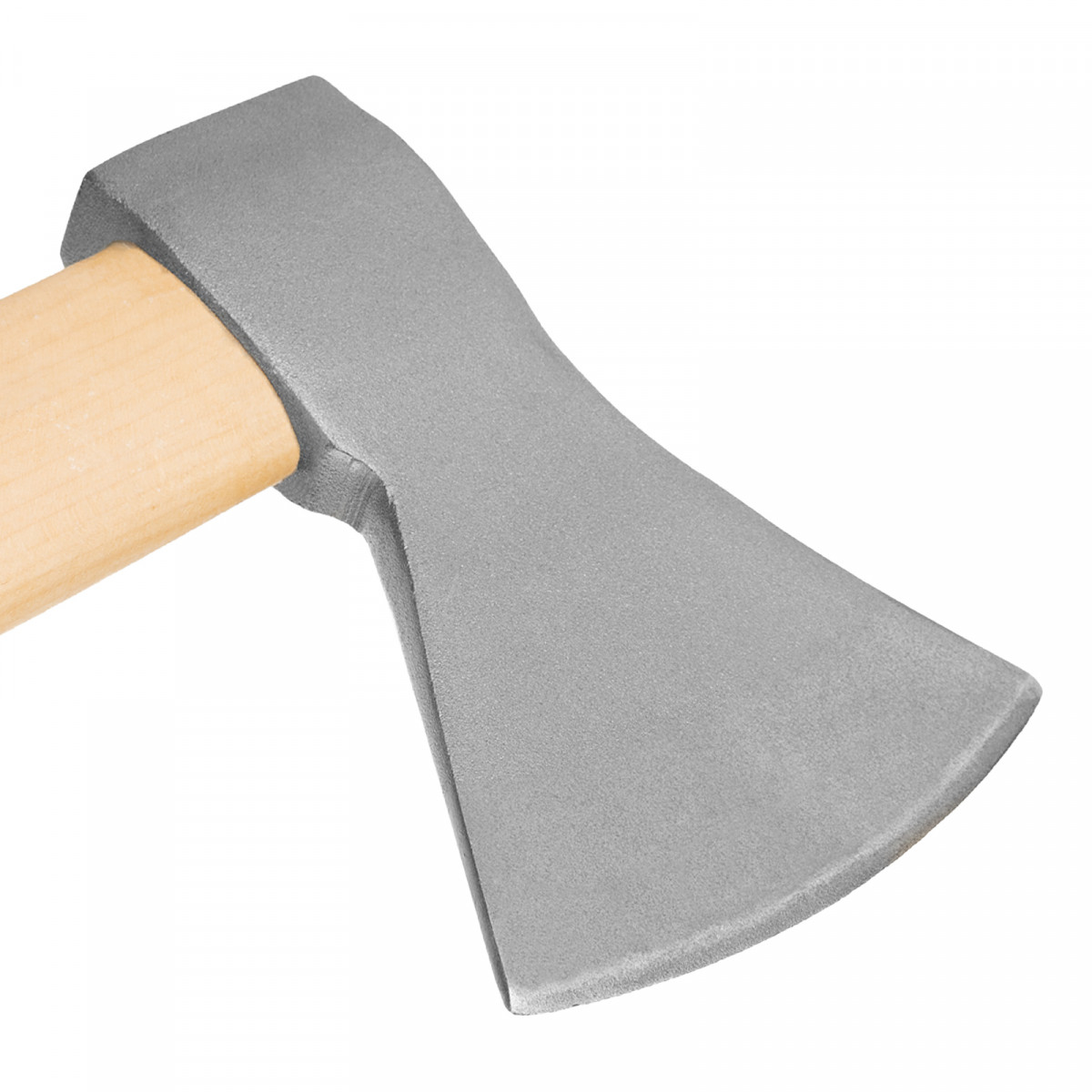 • Прочность и устойчивость к нагрузкам — голова топора выполнена из углеродистой стали 45, рабочие поверхности закалены до твердости 48-52 HRC