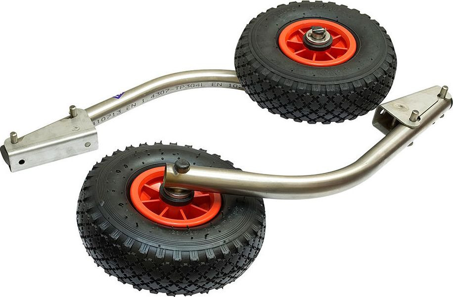 Транцевые колеса Патриот М из нержавейки предназначены для установки на лодку для упрощения перемещения лодки по суше, спуска на воду и вывода из воды на берег. Механизм установки колес позволяет приводить их в рабочее состояние по мере необходимости и убирать, когда лодка спущена на воду. Патриот М - быстросъемная система. Стойка с колесами фиксируется на кронштейны, при движении по воде - снимается.