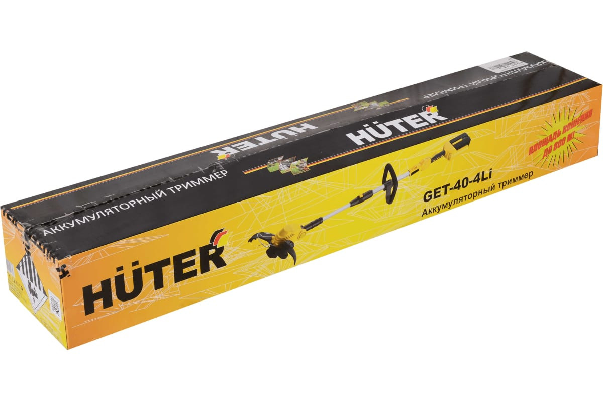Huter GET-40-4Li– электрический аккумуляторный инструмент для скашивания травы при помощи нейлоновой лески. Небольшой вес инструмента и дополнительная ручка, расположенная на штанге, делают работу с ним удобной и простой. Литиевый аккумулятор триммера выдает напряжение 40 В, имеет емкость 4 Ач, и заставляет мотор вращаться со скоростью 8000 об.*мин. Время, необходимое для полной зарядки аккумулятора – 60 мин. Разборная конструкция штанги делает аккумуляторный триммер компактным для перевозки и хранения. Катушка заправляется леской толщиной 1,6 мм и оснащена обрезчиком, ограничивающим вылет лески. Полоса скашивания - 31 см за один проход. На рукоятке удобно расположены кнопка включения двигателя и кнопка фиксации во включенном состоянии. Достоинства Huter GET-40-4Li: низкий уровень шума при работе; быстрая зарядка аккумулятора; большая продолжительность работы на одной зарядке; неприхотливость в обслуживании; автономность работы и отсутствие необходимости в ГСМ.