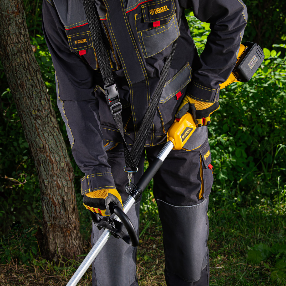 • Равномерное распределение нагрузки — к триммеру прилагается плечевой ремень, позволяющий скашивать траву без ощущения усталости.