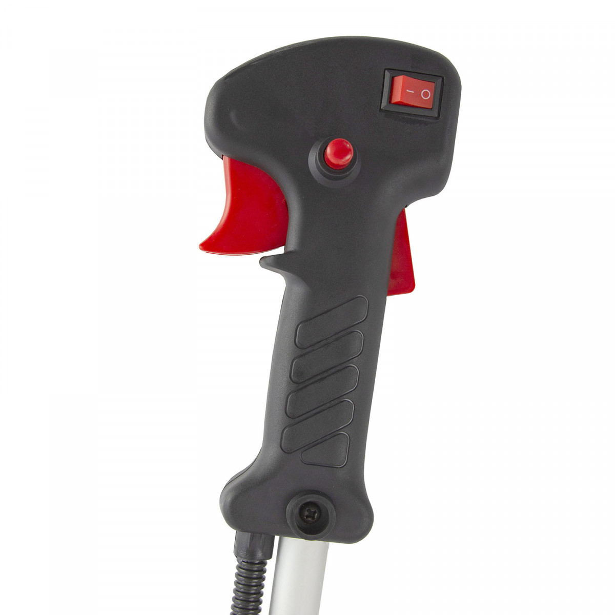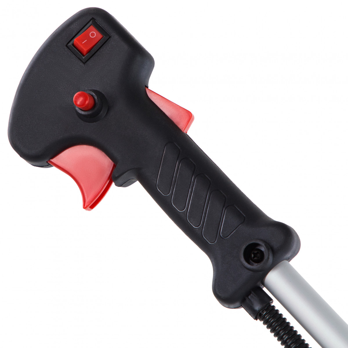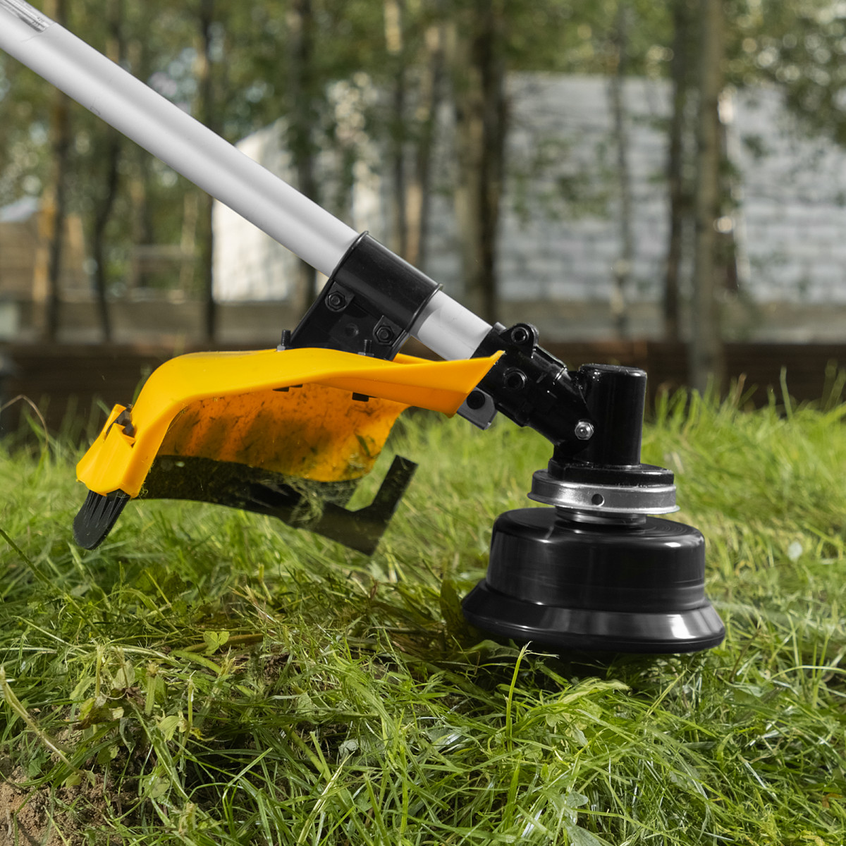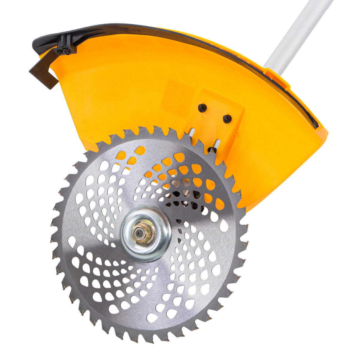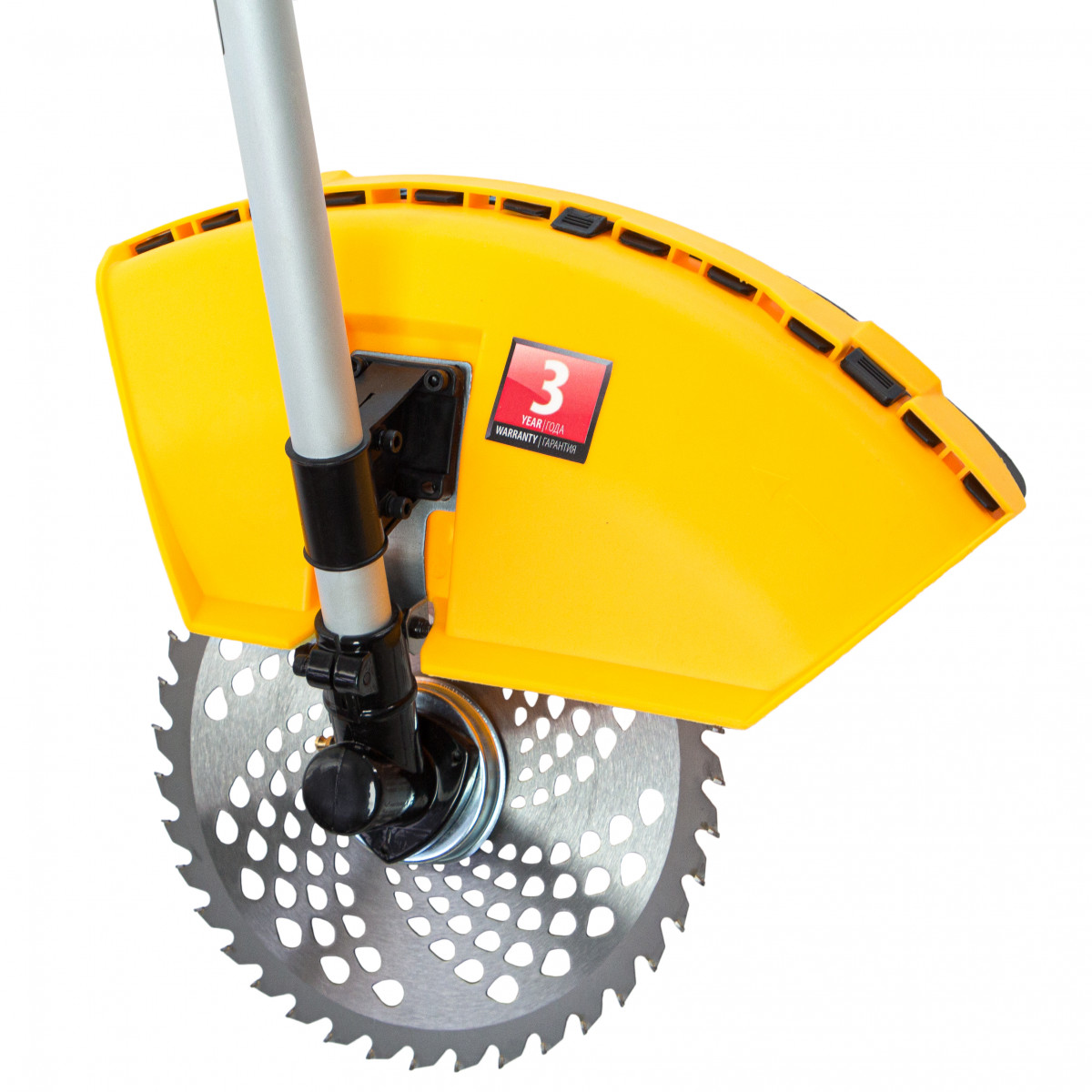 - Безопасность — пластиковый кожух защищает пользователя от вылетающей травы, камней, веток и мелких частиц.