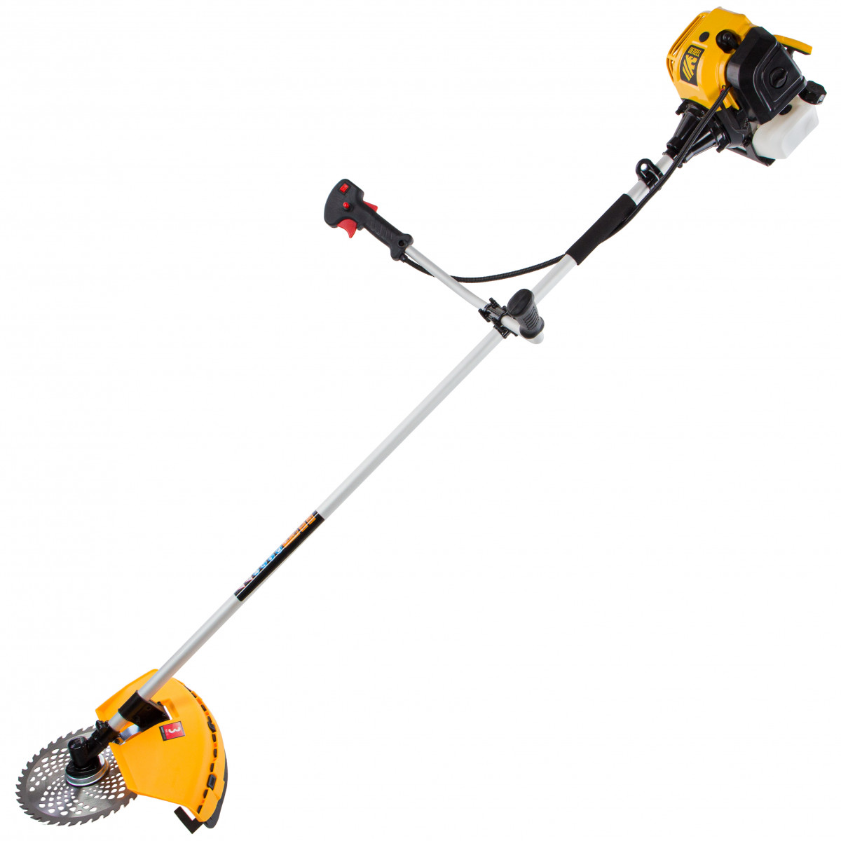 - Уменьшенная нагрузка на плечи и спину — триммер весит 7,5 кг и комплектуется наплечным ремнем.