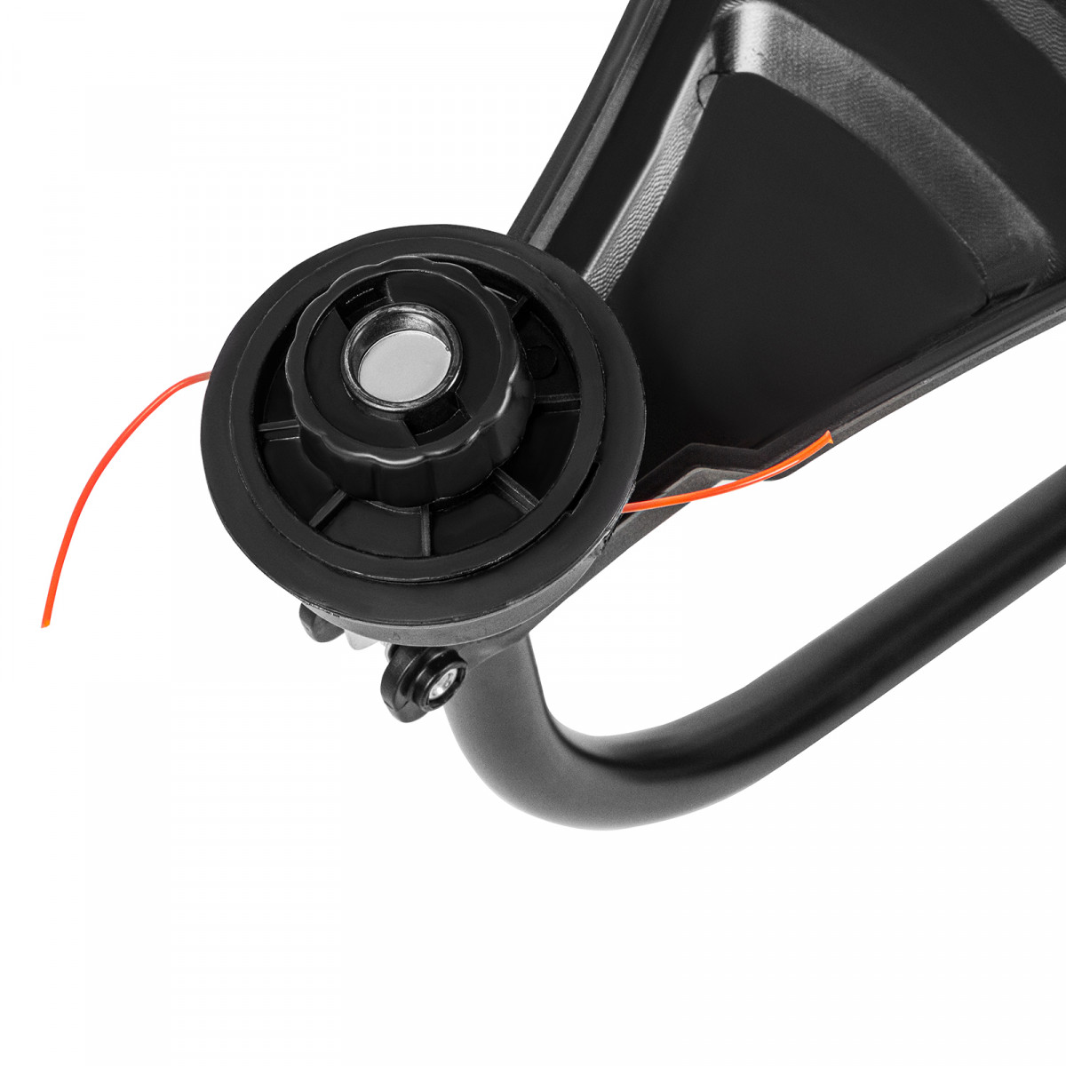 • Эргономичность — плечевой ремень снижает нагрузку на руки, а D-образная ручка обеспечивает надежный хват и облегчает управление триммером.