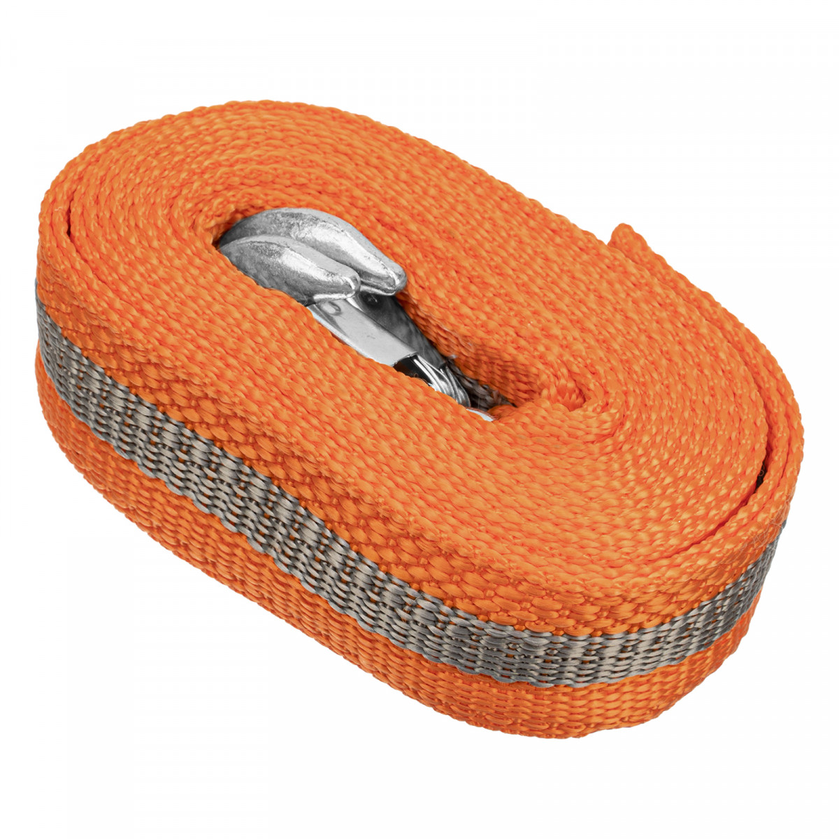 Трос буксировочный Stels 54382 с 2 крюками, поставляющийся в сумке на молнии, используется для буксировки на гибкой сцепке легковых автомобилей массой до 7 тонн. Выручит автолюбителя в сложной ситуации на дороге: если закончилось топливо, сломался двигатель, застряли колеса и т. д.