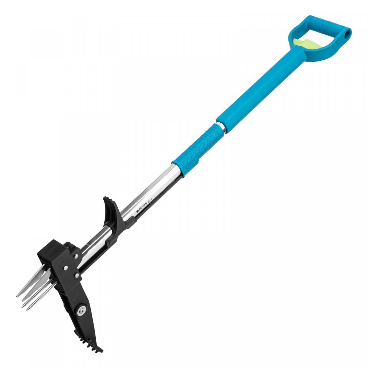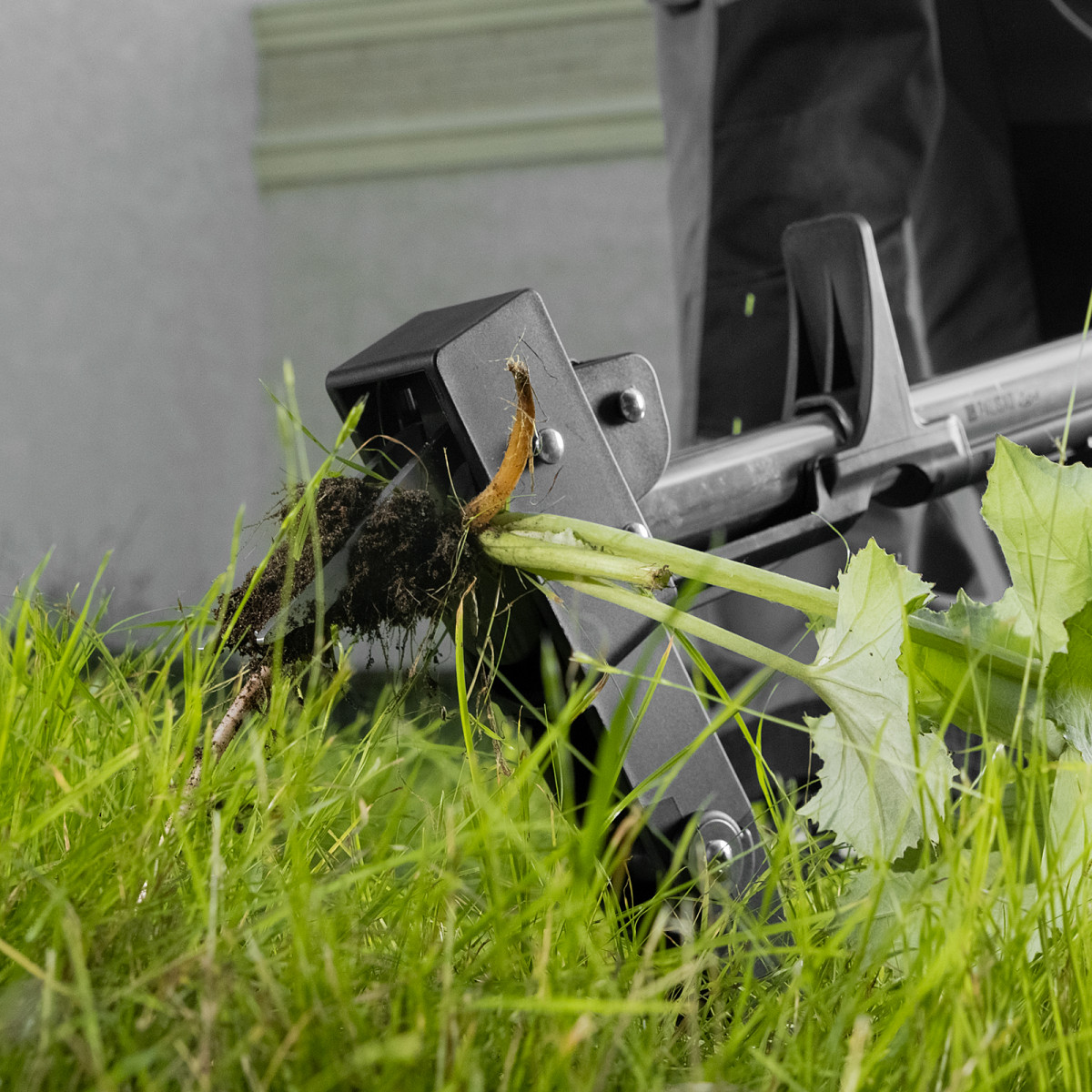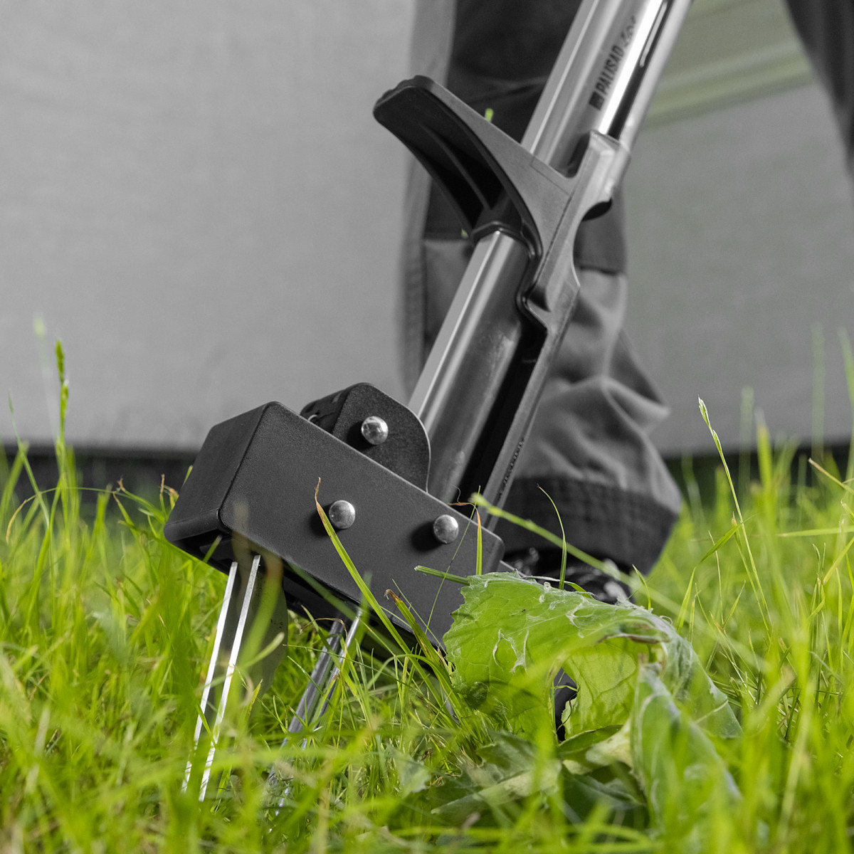 • Удобная работа — упор для ноги облегчает введение удалителя в даже в твердую почву, а благодаря педали для размыкания игл не нужно наклоняться, чтобы удалить сорняк.