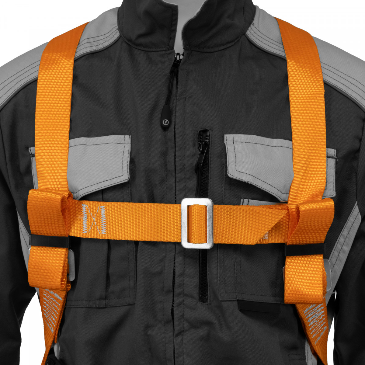 - Удобная конструкция — благодаря вспомогательной ленте на груди привязь быстро пристегивается и отстегивается.