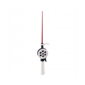 Зимняя удочка с открытой шпулей, клавишным стопором и съемными ножками для установки на льду, рукоятка средняя из пенопласта, диаметр катушки 55 мм.