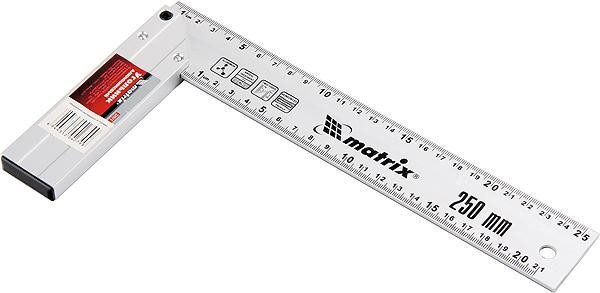 Предназначен для разметки и проверки прямых углов при обработке и сборке изделий. Имеет анодированную поверхность. Алюминиевый измерительный профиль имеет желоб, который придает особую прочность конструкции. Двухсторонняя разметка с обеих сторон профиля. Информативные пиктограммы. Отверстие для подвеса.