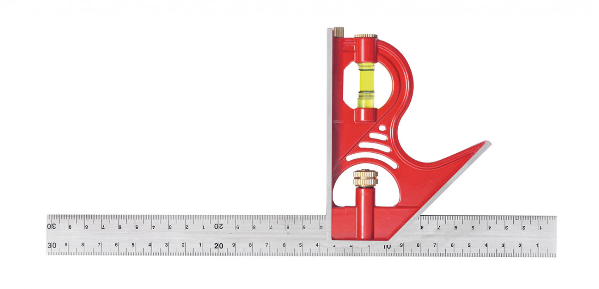 Комбинированный угольник выполнен из прочной нержавеющей стали. Это обеспечивает длительный срок службы при любой влажности.Определение прямого угла упрощается за счет скользящего угла и ровной отполированной раме. Имеется встроенный уровень.
