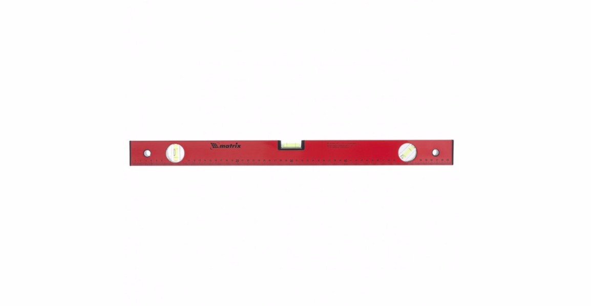 Алюминиевый уровень 600 мм, 3 глазка, красный, линейка MATRIX 33223 - качественный и удобный инструмент, при помощи которого проще монтировать сложные конструкции, определять отклонение от горизонтали и вертикали. Имеются защитные заглушки на торцах профиля.