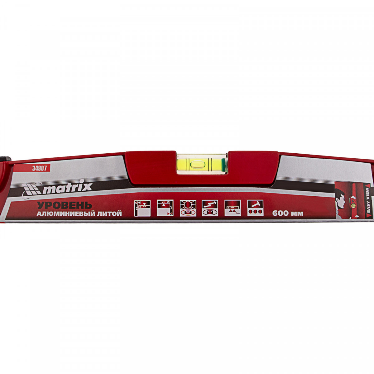 Уровень алюминиевый, 600 мм, литой, 2 глазка (1 фронтальный) ударная площадка Matrix