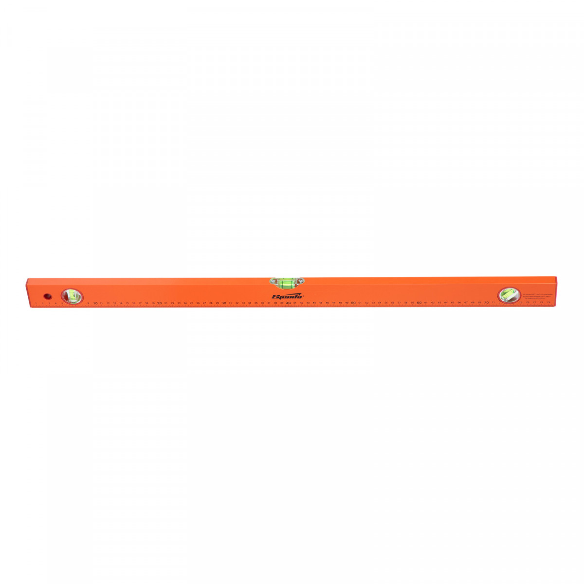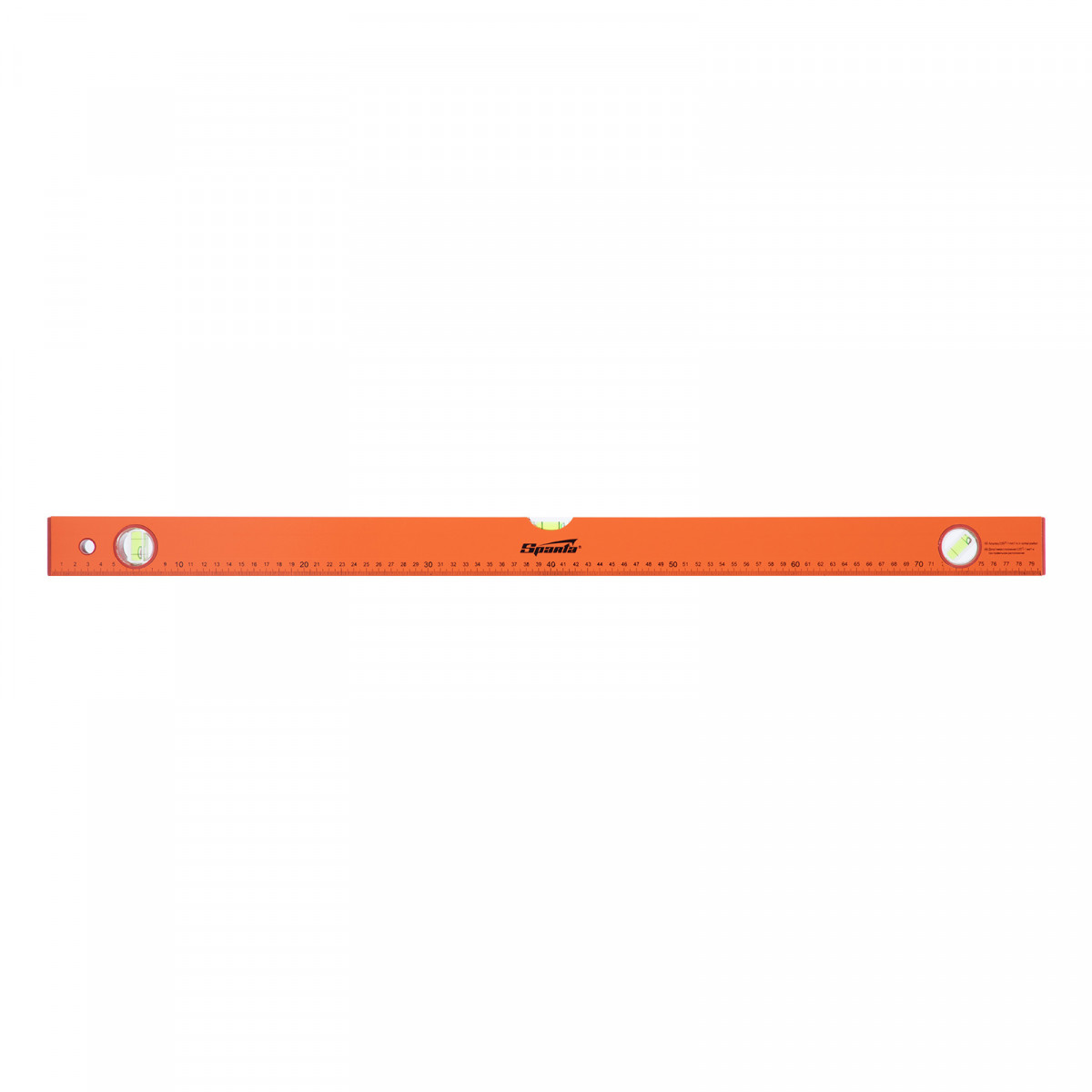 Алюминиевый уровень Sparta 330265 длиной 800 мм, желтого цвета, с 3 глазками и линейкой, будет полезен при проведении строительных, отделочных, облицовочных и других работ, требующих особой точности. Уровень с тремя глазками поможет определить отклонение от горизонтальной и вертикальной плоскости, выставить угол 45°, измерить предметы и т. д.