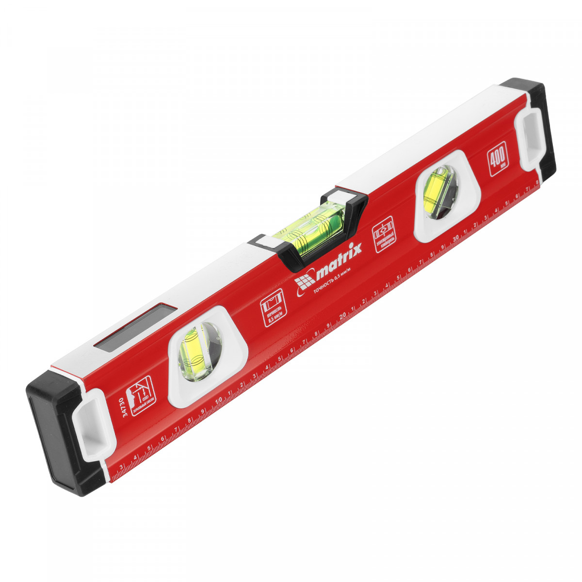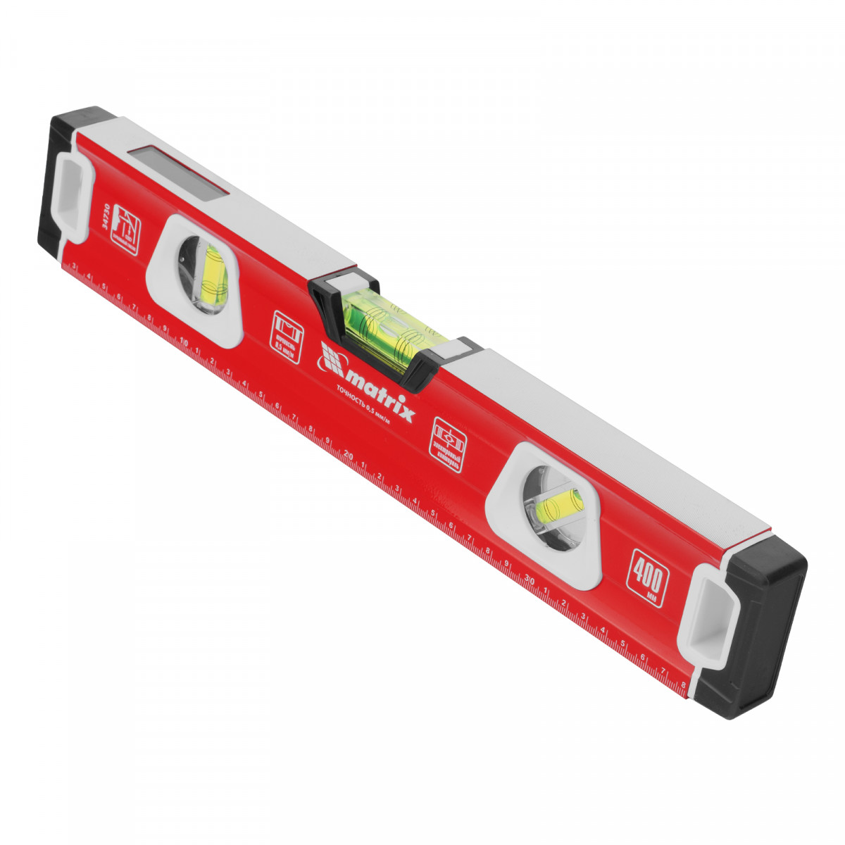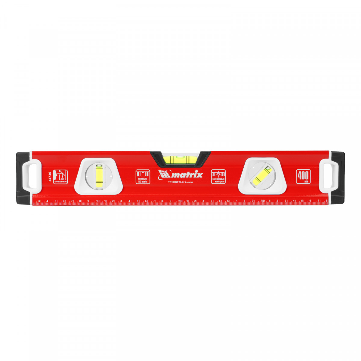 Уровень алюминиевый, магнит, фрезерованный, 3 глазка (1 зеркальный) 400 мм Matrix