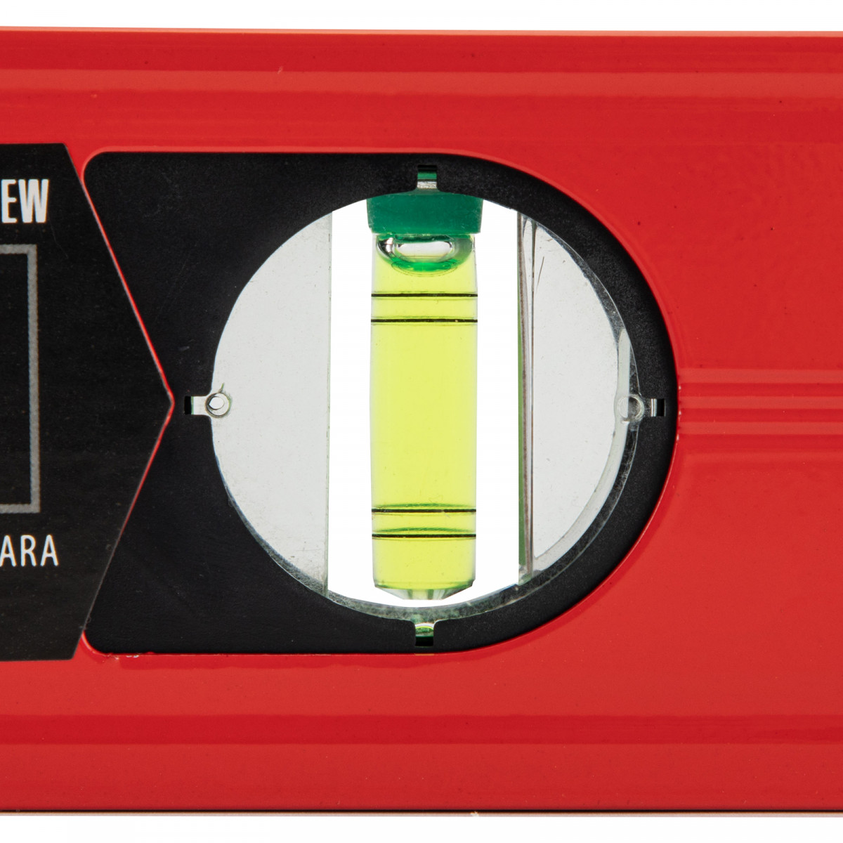 Уровень алюминиевый магнитный Matrix 34708 усиленной конструкции, длиной 800 мм, с фрезерованной рабочей поверхностью, оснащен 3 глазками и одним зеркальным отражателем. Позволяет выявить отклонения от вертикали, горизонтали и угла 45°. Встроенный зеркальный глазок облегчает считывание показаний.