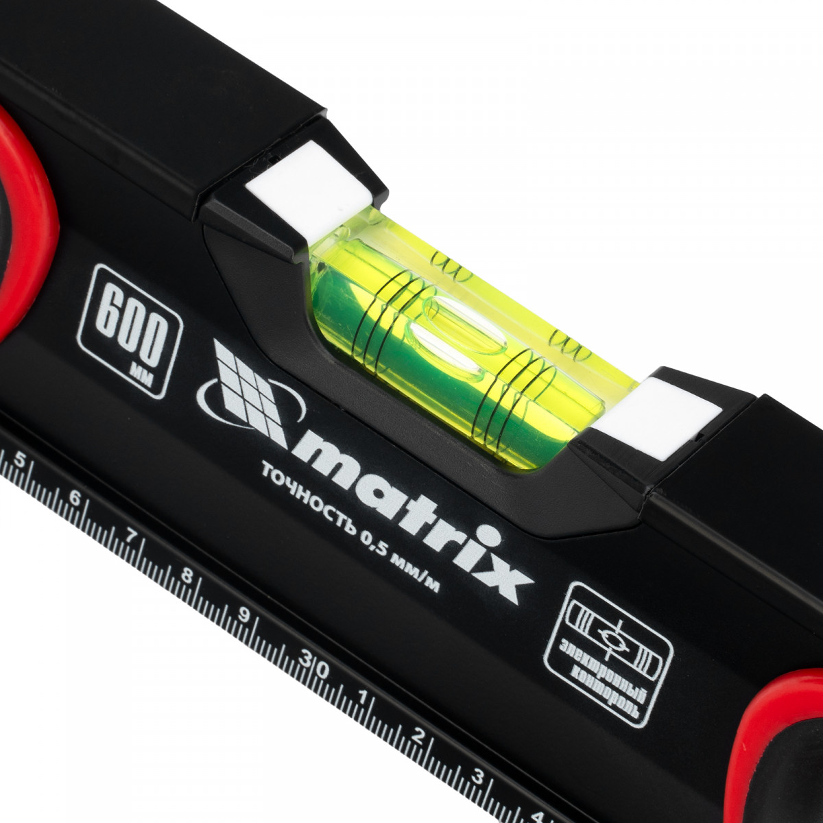 Уровень алюминиевый, усиленный, фрезерованный, 3 глазка, двухкомпонентные рукоятки, 600 мм Matrix
