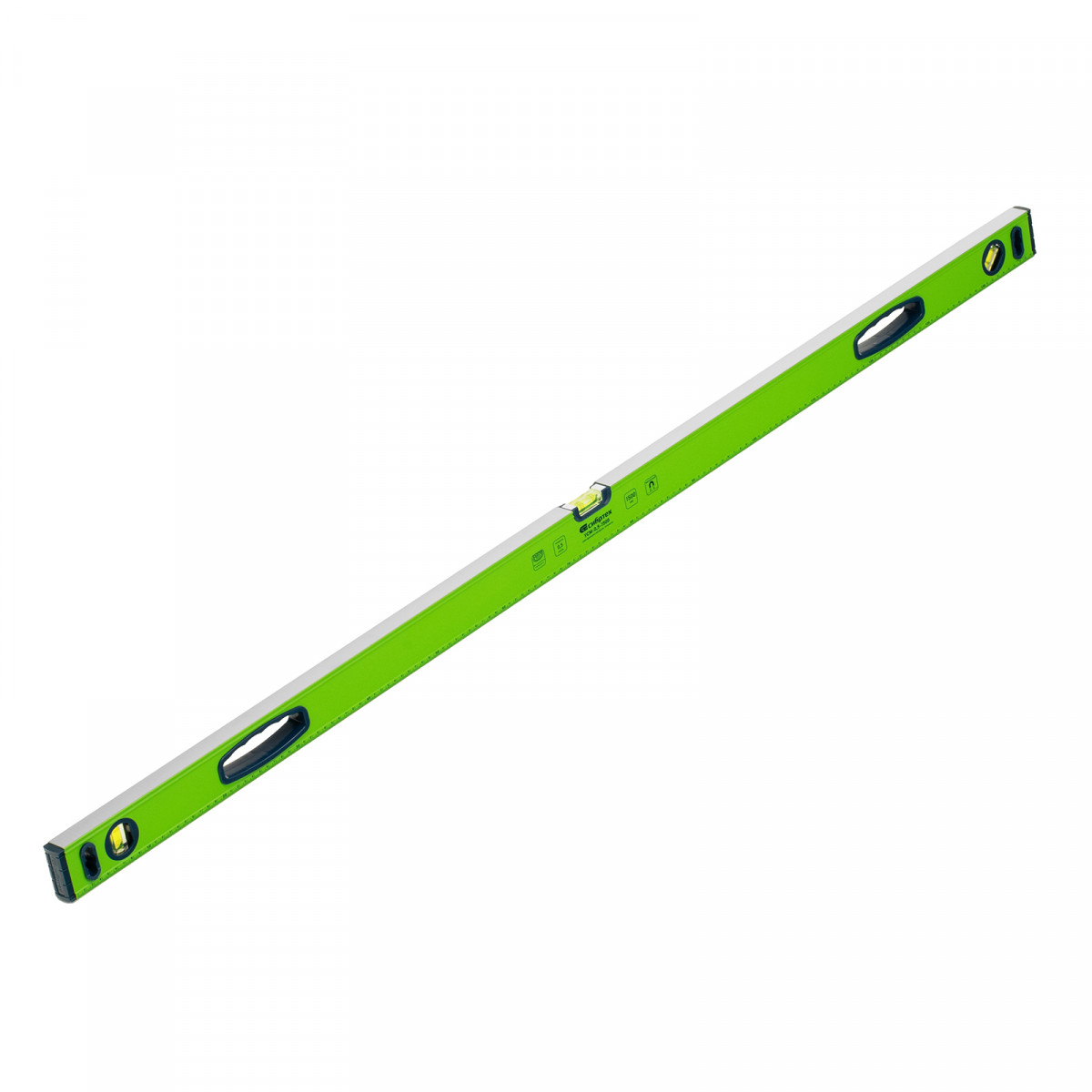 Уровень алюминиевый магнитный Сибртех УСМ-0,5-1500 34119 длиной 1500 мм, фрезерованный, с рукоятками и 3 глазками, позволяет оценить ровность поверхностей и определить отклонения относительно горизонтали, вертикали и угла 45°. Будет полезен на строительной площадке, а также для выполнения работ по облицовке и отделке помещений, для монтажа конструкций.