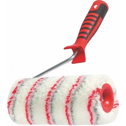 Термически приклеенная шубка валика износостойкая и бесшовная, создает идеально ровное покрытие. Улучшенная конструкция ролика обеспечивает легкое и свободное вращение. Материал шубки валика ― полиакрил. Применяется для работ с водно-дисперсионными красками и красками на основе химических растворителей. Предназначен для нанесения краски на средне шероховатые поверхности. В комплекте двухкомпонентная ручка, бюгель оцинкован.