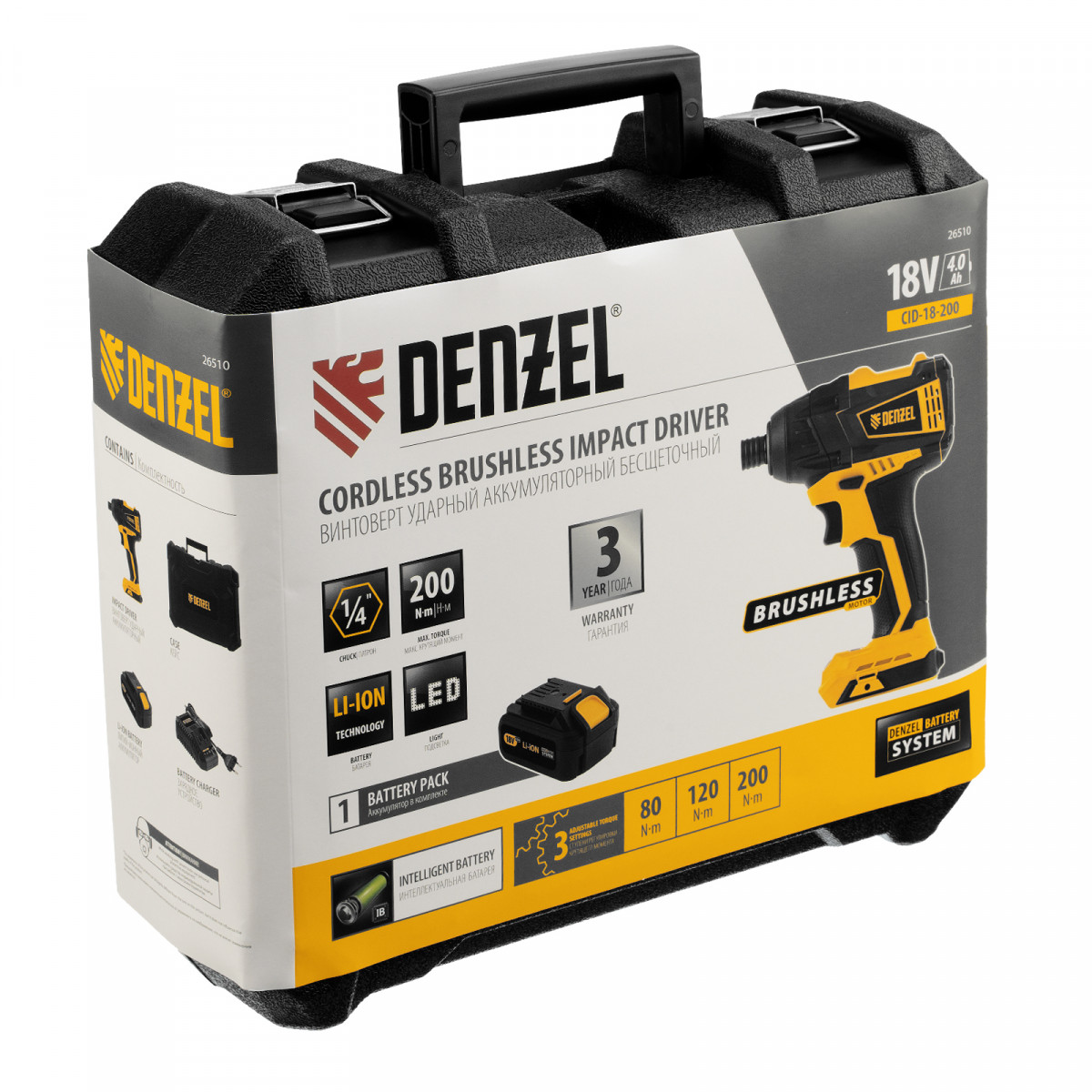 Винтоверт ударный аккумуляторный бесщет CID-IB-200 18В Li-Ion Denzel