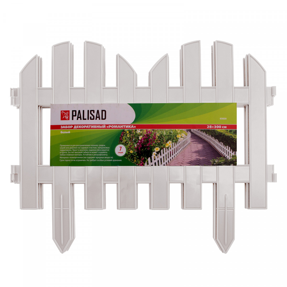 Белый декоративный забор Palisad «Романтика» 65020 размером 28 х 300 см позволяет обозначить границы отдельных участков озелененной территории — дорожек, клумб, грядок, приствольных кругов деревьев. В комплекте 7 секций общей длиной 300 см. Заборчик украсит дачный участок и придаст ему завершенный вид.