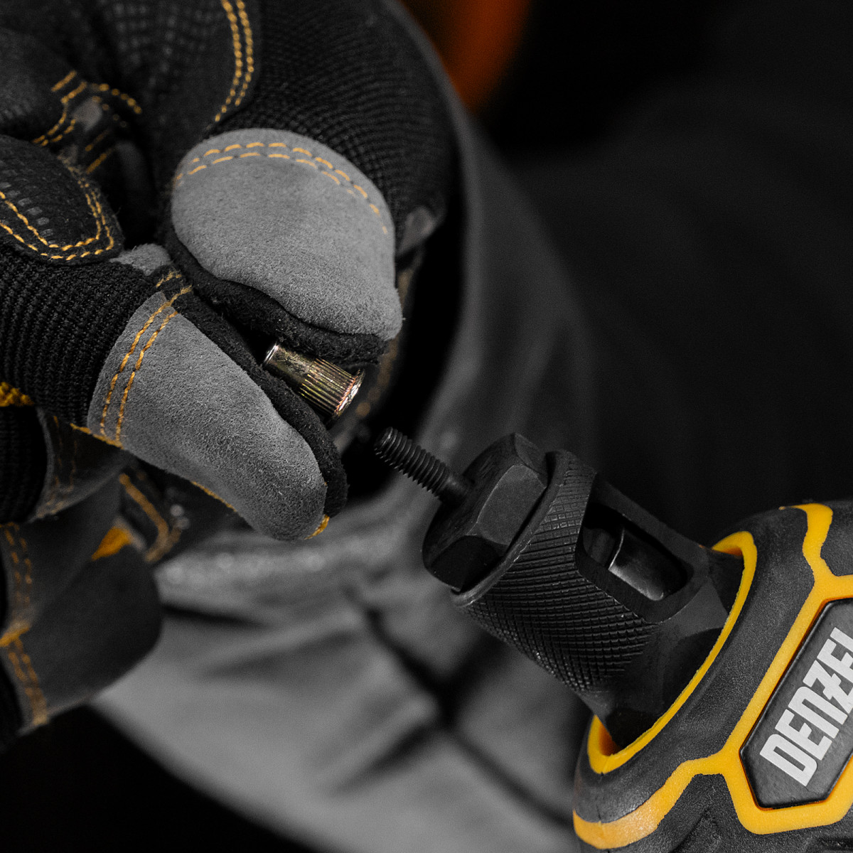 Стальные резьбовые заклепки Denzel 40601, с резьбой M4, оцинкованные, предназначены для скрепления листовых материалов толщиной 0,5-2 мм. Совместимы с заклепочником Denzel 40501. Позволяют получить резьбовое соединение даже при одностороннем доступе к месту крепления. Крепежные элементы используются для проведения строительных и монтажных работ, пригодятся на даче и в гараже.