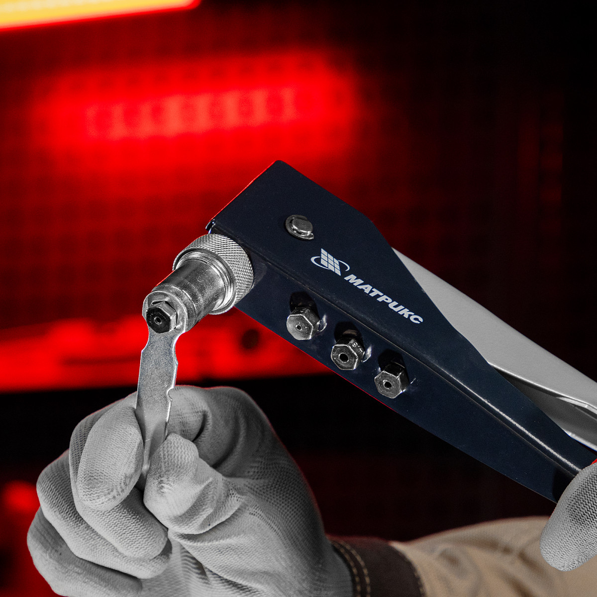 Заклепочник, 250 мм, переставной 0-90 градусов, заклепки 2.4-3.2-4.0-4.8 мм Матрикс