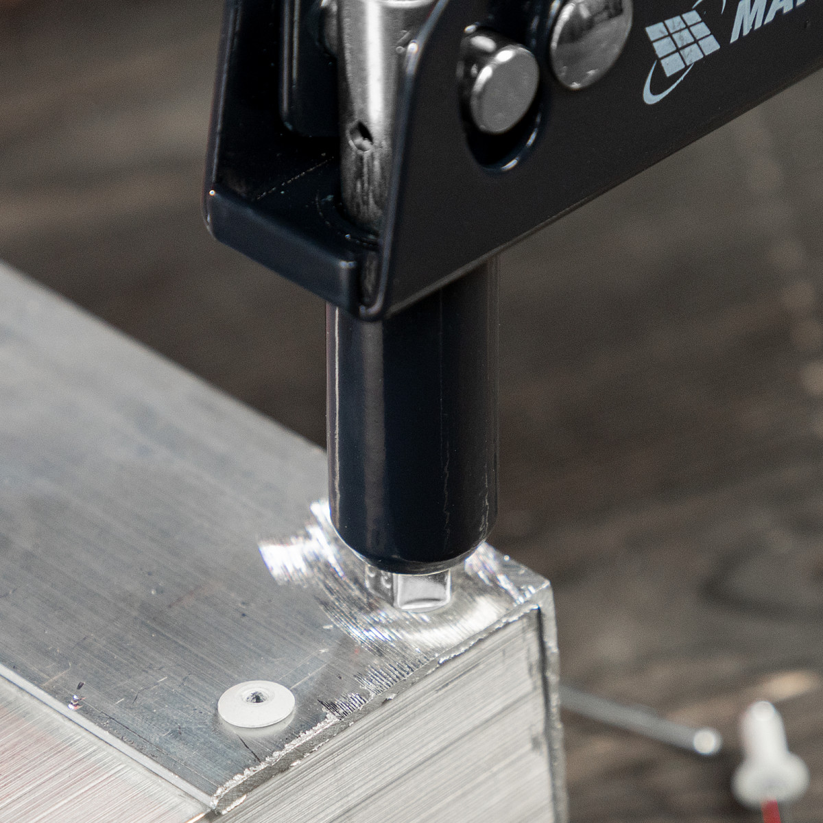Заклепочник Матрикс 40524 длиной 250 мм используется с вытяжными заклепками диаметром от 2,4 до 4,8 мм. Инструмент применяется при работе с многослойным материалом и различными деталями из металла, пластика и т. д. В комплект входят сменные насадки для заклепок различного диаметра, фиксирующиеся на корпусе инструмента, поэтому их можно быстро менять при необходимости. Заклепочник будет полезен во время проведения строительных и ремонтных работ, пригодится также дома, в гараже или на даче.