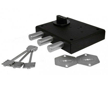 Засов из трех цилиндрических ригелей диаметром 18 мм, с максимальным вылетом 40 мм.