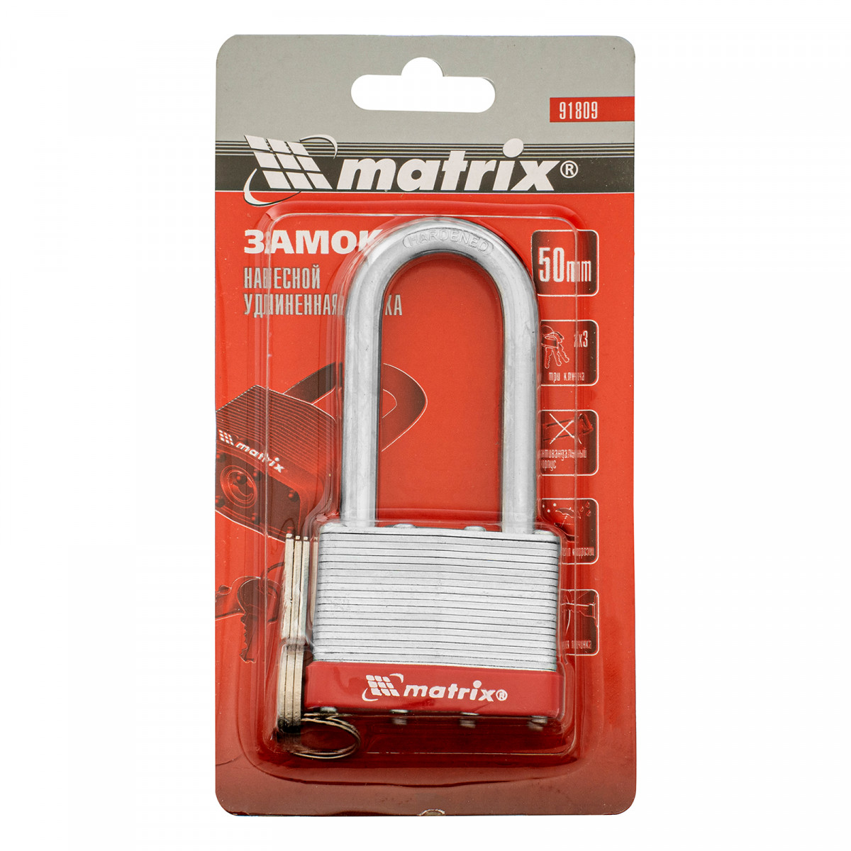 Замок навесной, 50 мм, удлиненная дужка Matrix