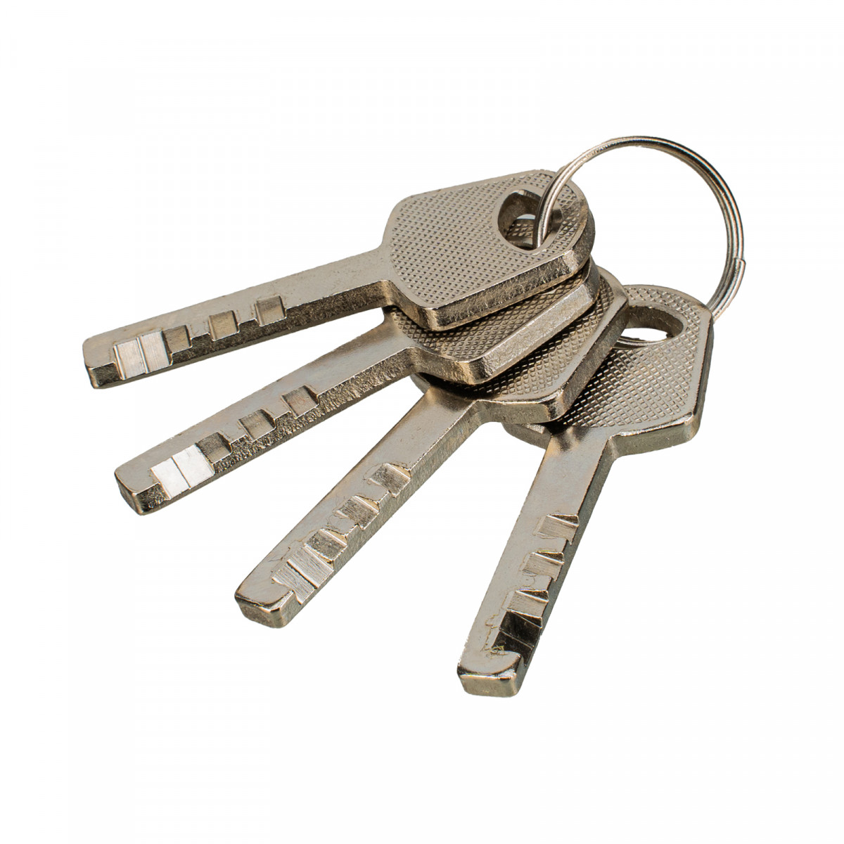 - Запасные ключи — в комплекте 4 шт. на случай утери или использования замка несколькими людьми.
