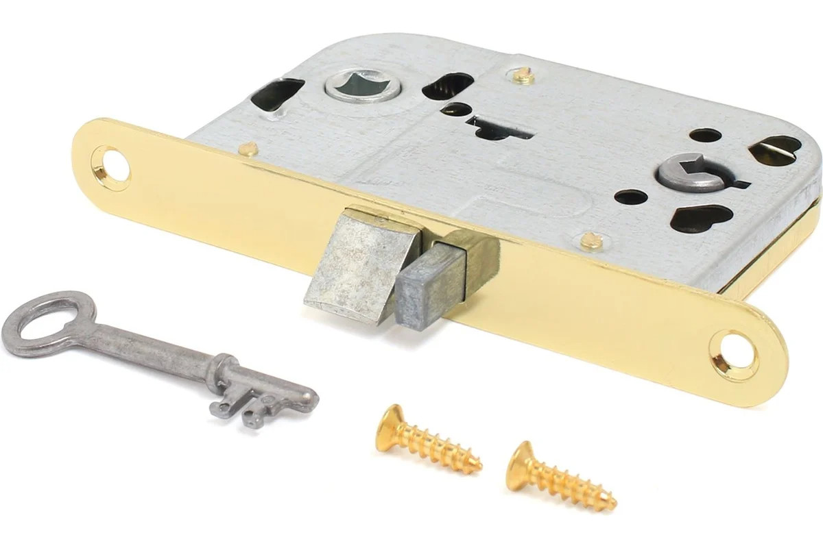 Защёлка врезная с фиксатором для "финских дверей" с четвертью (притвором). Материал — сталь. Гарантийный срок эксплуатации — 3 года. Ответная планка приобретаются отдельно. Запирается при помощи стандартного ключа, входящего в комплект или сантехнической завертки, которая приобретается отдельно.