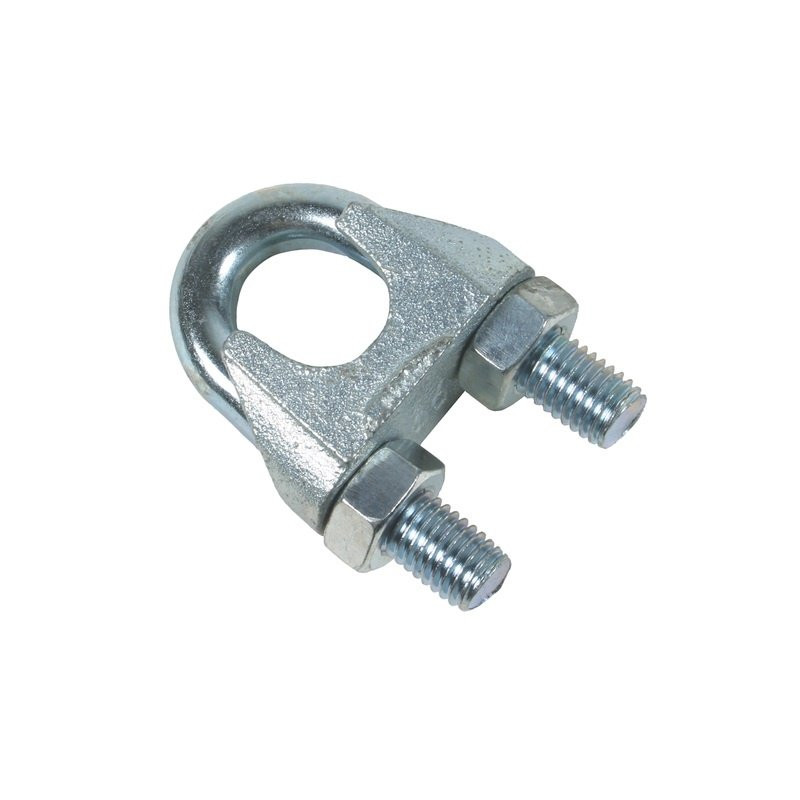 Зажимы применяются для соединения тросов между собой, а также для изготовления петель на концах троса. DIN 741 Зажим троса металлический стальной с двумя шестигранными гайками, форма В, легкое исполнение. Материалы: Сталь Сталь с покрытием: гальваническая оцинковка, горячая оцинковка Нержавеющая сталь: кислотостойкая аустенитная сталь типа 10Х17Н13М2Т. Цветные металлы, пластик, сплавы.