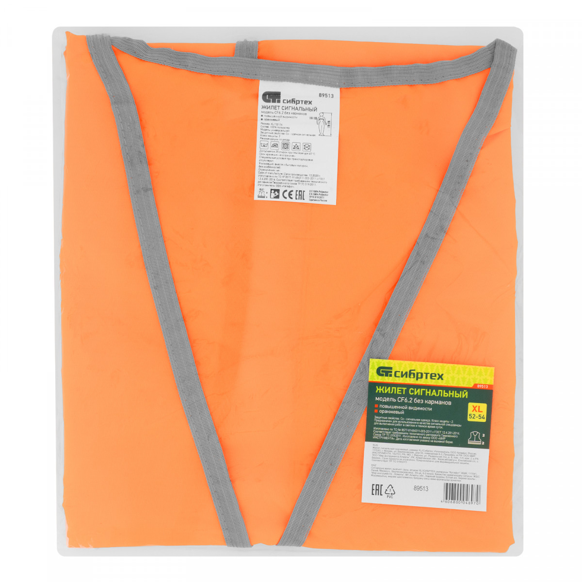 Жилет сигнальный, оранжевый, размер XL Сибртех