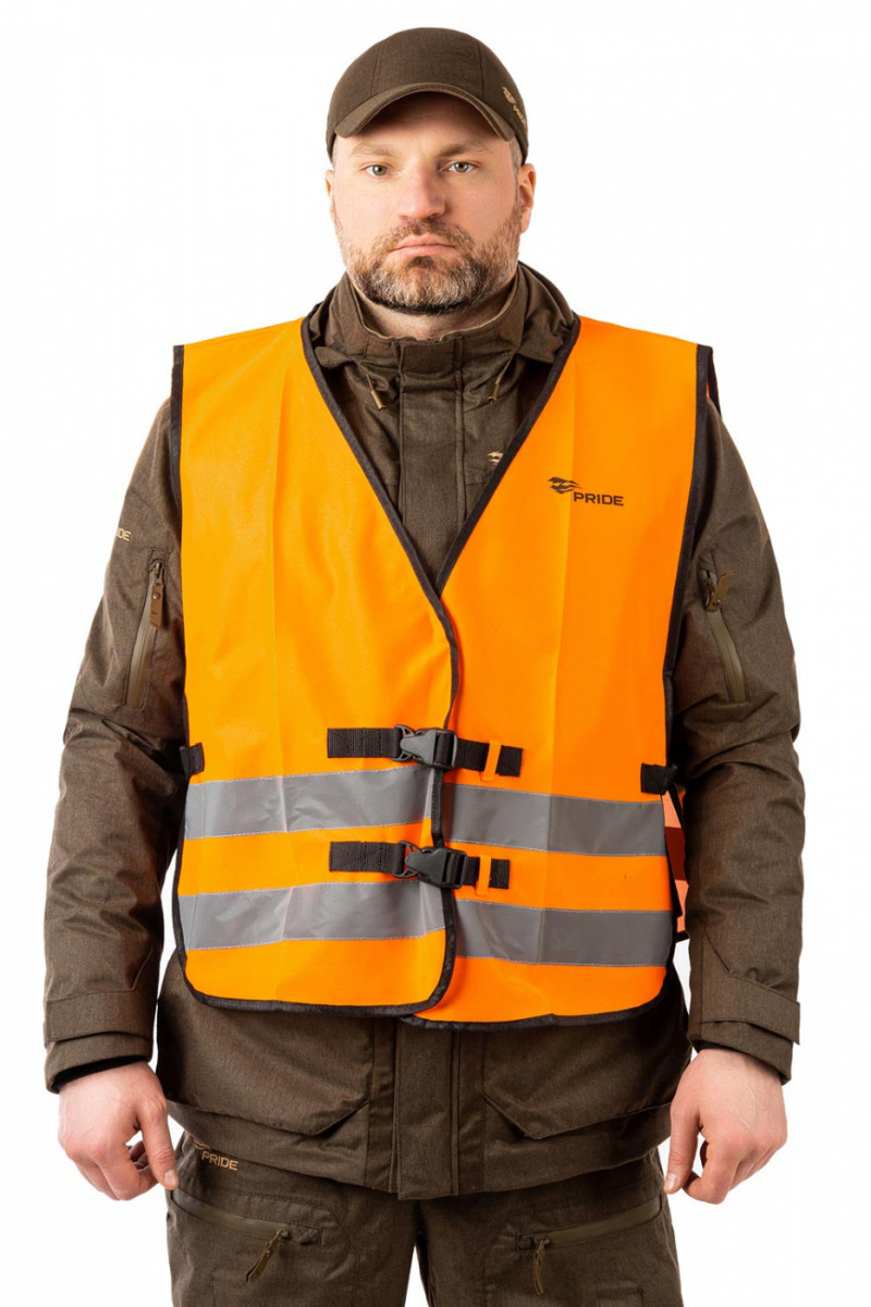 Сигнальный жилет - необходимый элемент безопасности на охоте. Комфортно надевается поверх одежды. Возможность регулировки по объему.