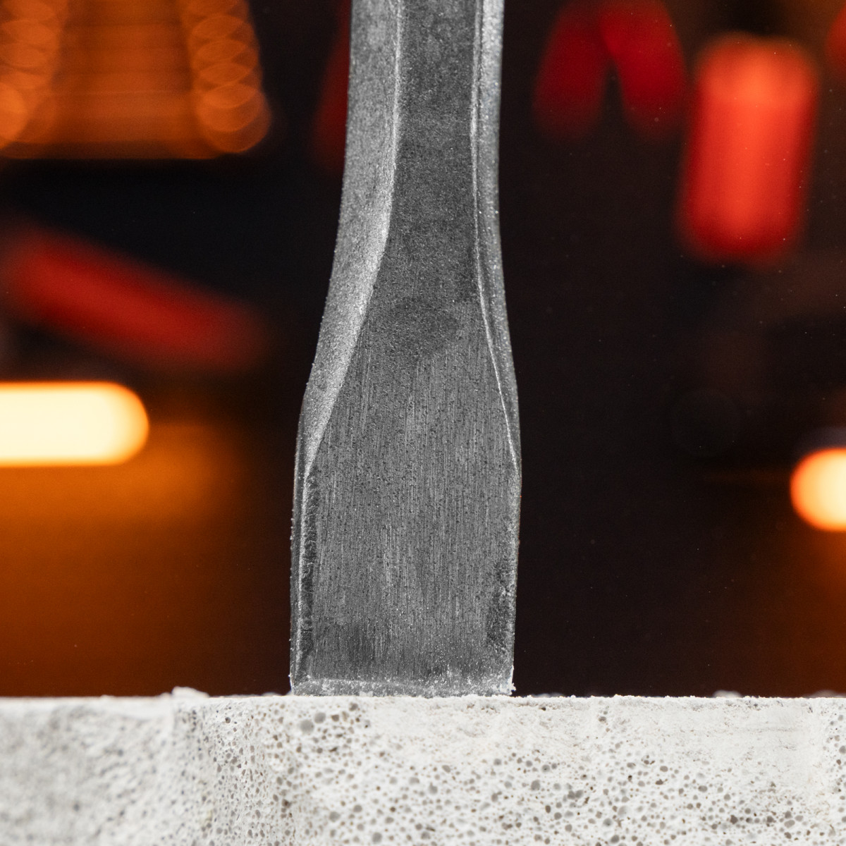 - Прочность и долговечность — зубило изготовлено из легированной стали 65 Mn с добавлением марганца.