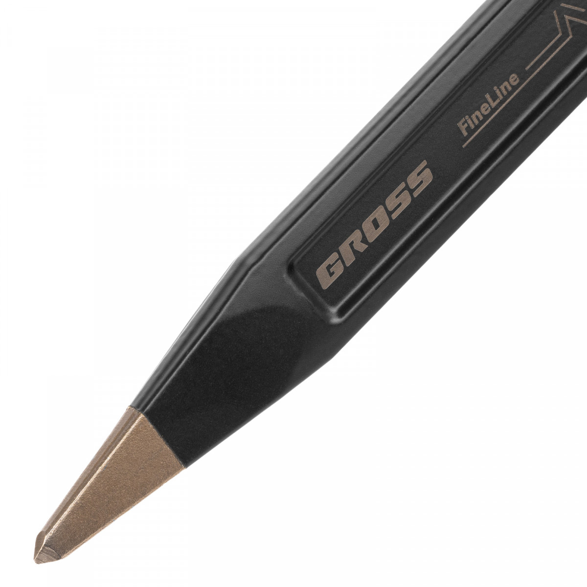 Зубило-керн Gross 18805 длиной 300 мм — ручной инструмент для использования совместно с молотком или кувалдой. Рабочая часть с двусторонней заточкой позволяет штробить бетон или создавать лунки для разметки и установки сверла и бура.